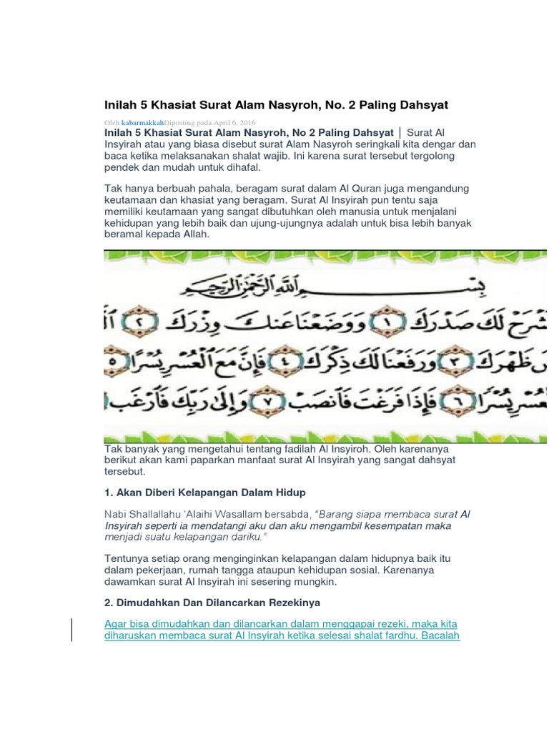 | Judul Surah: Sungguh Dahsyat Ini 6 Khasiat Surah Al Insyirah |